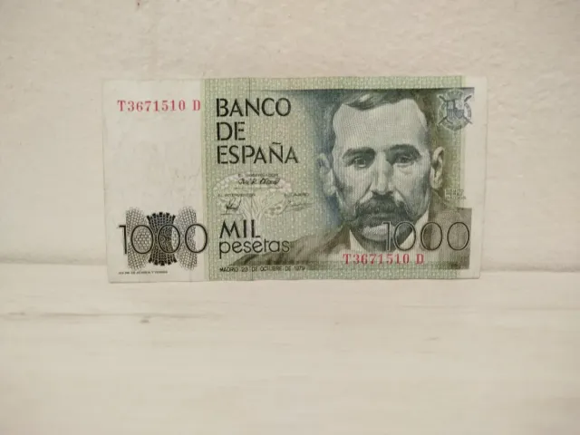 Detalles del productoBillete de 1000 pesetas del Banco de España, emitido en 1979.