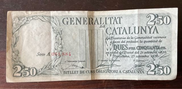 Billete 2,5 pesetas 1936 generalitat de catalunya