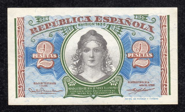 Billete 2 Pesetas República Española 1938