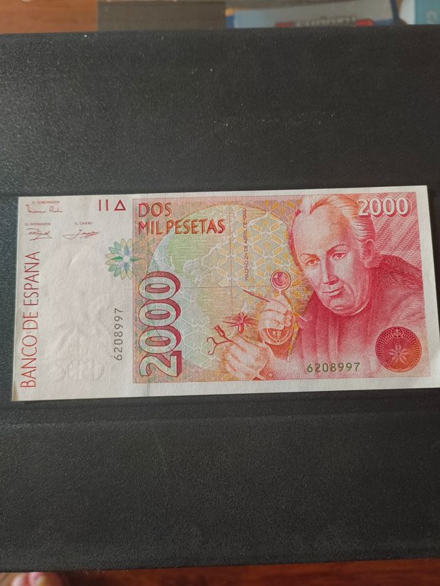 Detalles del productoBillete de 2000 pesetas de España, emitido en 1992. Se encuentra en perfecto estado, sin circular.