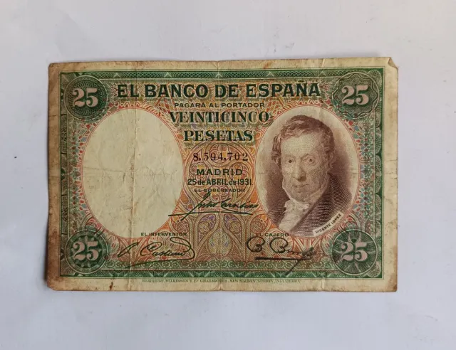 Detalles del productoantiguo billete de 25 pesetas de 1931