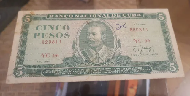 Detalles del productoBillete de 5 pesos cubanos del Banco Nacional de Cuba, con la imagen de Antonio Maceo. Año 1986.