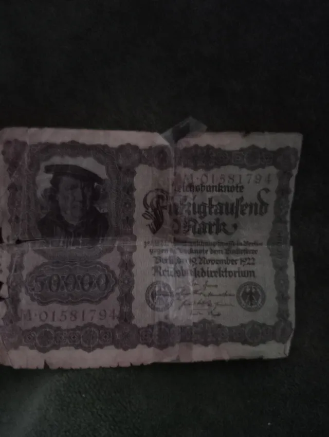 Detalles del productoBillete antiguo de 50.000 Mark emitido por el Reichsbankdirektorium.