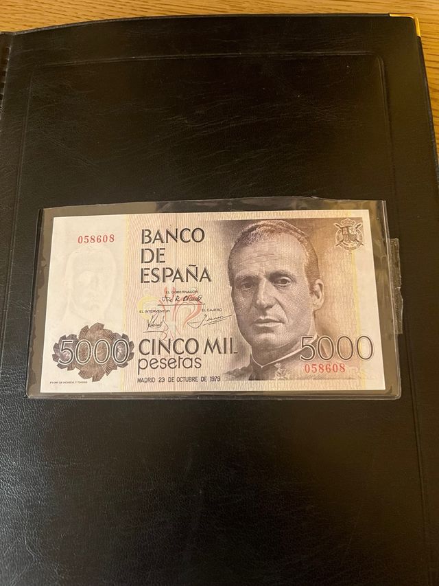 Detalles del productoBillete de 5000 pesetas del Banco de España, emitido en 1979. Un ejemplar con calidad de plancha.