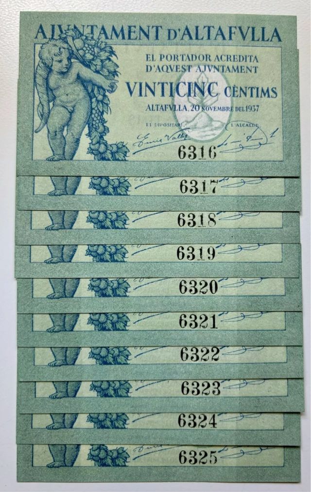 Billete Local/Municipal ALTAFULLA 25 Cent 1937 SC