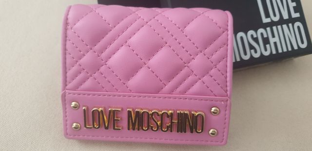 Billetero rosa con logotipo en la parte delantera. El tamaño es ideal.