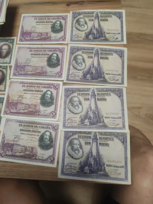 Detalles del productoConjunto de billetes antiguos del Banco de España.