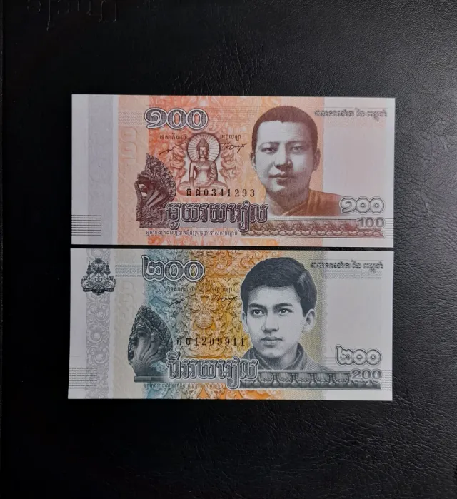 Detalles del productoConjunto de dos billetes de Camboya, uno de 100 rieles y otro de 200 rieles en perfecto estado. Años 2014 y 2022.