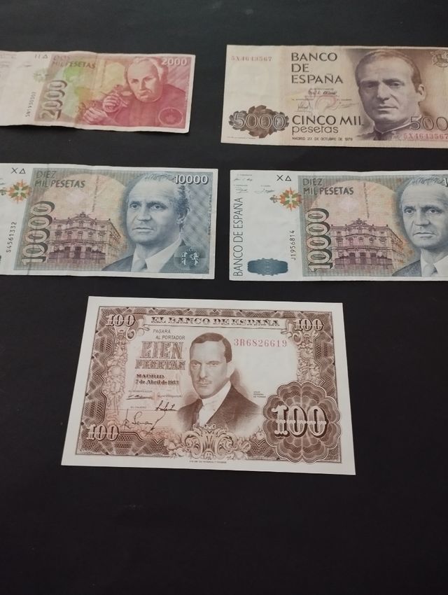 Billetes españoles antiguos: 100, 5000, 10000 pese