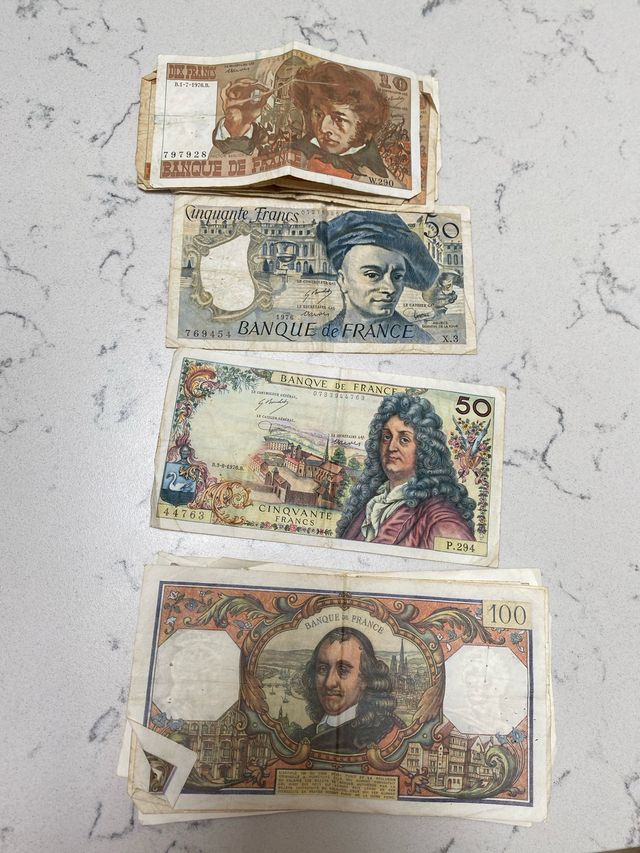 Detalles del productoConjunto de billetes franceses antiguos.