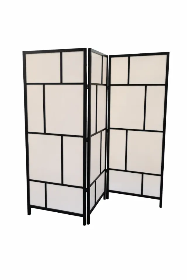 Detalles del productoBiombo de tres paneles(72cm de ancho x 185cm de alto x 3cm de espesor, cada panel) de la marca IKEA. Su diseño moderno con estructura negra y paneles blancos se adapta a cualquier espacio.