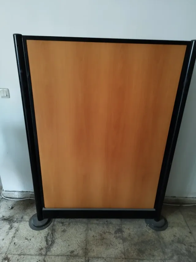 Detalles del productoDos biombos separadores es ideal para oficinas o espacios que necesiten delimitar áreas. Su diseño combina madera y metal.