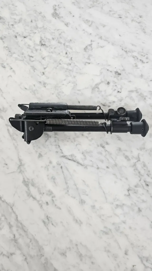 Bipode Harris para armas. - Fabricado en metal negro. - Diseño plegable para fácil transporte. - Incluye resortes para ajuste.