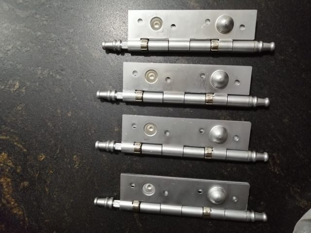 Detalles del productoCuatro bisagras de seguridad con rodamientos, canto cuadrado, con remate, acabado cromo mate, marca becusa, medidas 150x80, no están usadas, vendo las cuatro bisagras por 20 € Medidas del producto