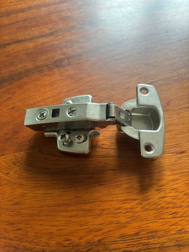 Detalles del productoJuego de bisagras metálicas para armarios con freno, valía en el leroy como 6 euros cada una y las tengo muertas de risa en casa.