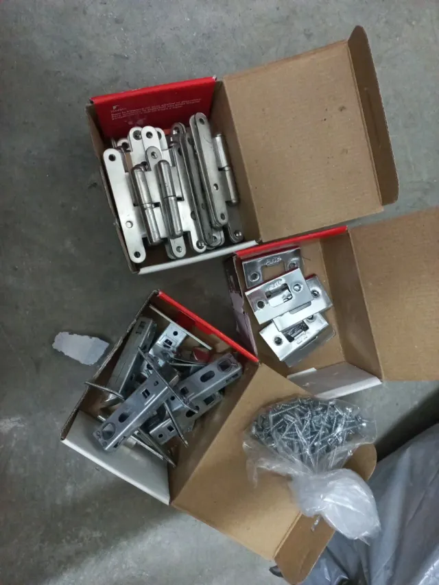Lote de bisagras para puertas, ideales para proyectos de carpintería o reparaciones. - Bisagras de metal plateado. - Incluye tornillos.