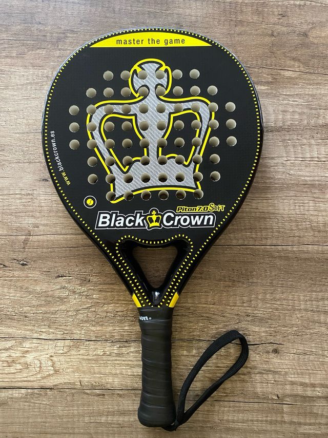 Pala de pádel Black Crown Piton 7.0 Soft. - Diseño en color negro con detalles en amarillo. - Forma redonda. - Acabado mate.