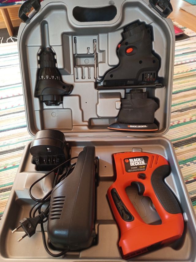Detalles del productoKit Black & Decker Quattro en perfecto estado. Incluye taladro, lijadora y caladora.
