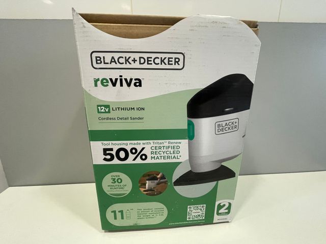 Detalles del productoBLACK+DECKER Reviva Lijadora inalámbrica de 12 V con 6 hojas de lijado REVDS12A10-GB