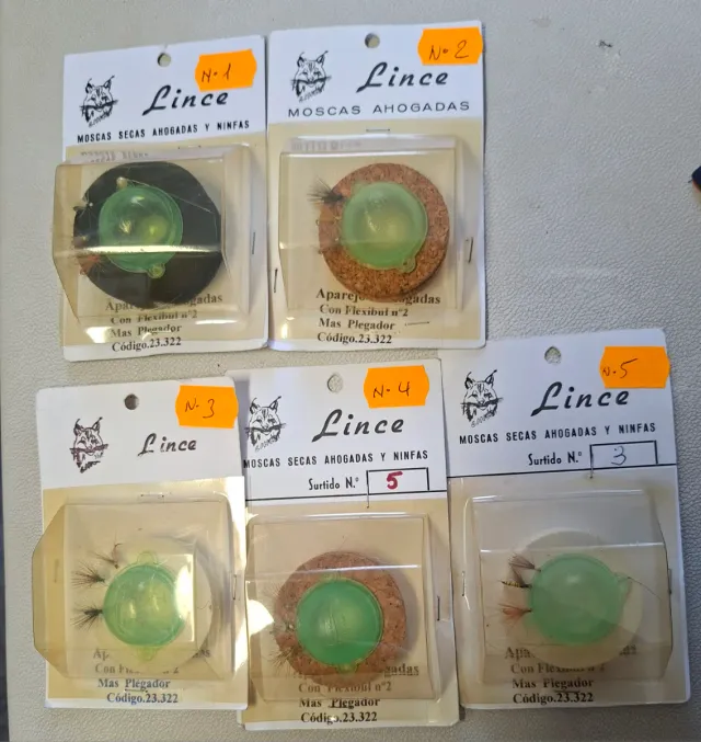 Detalles del productoLote de 5 moscas para pesca de la marca Lince.