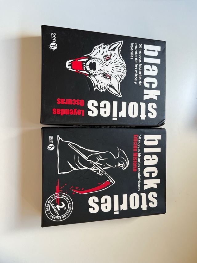 Dos juegos de cartas Black Stories. - Black Stories: Leyendas Oscuras. - Black Stories: Edición Misterio. - Cada juego incluye 50 historias.