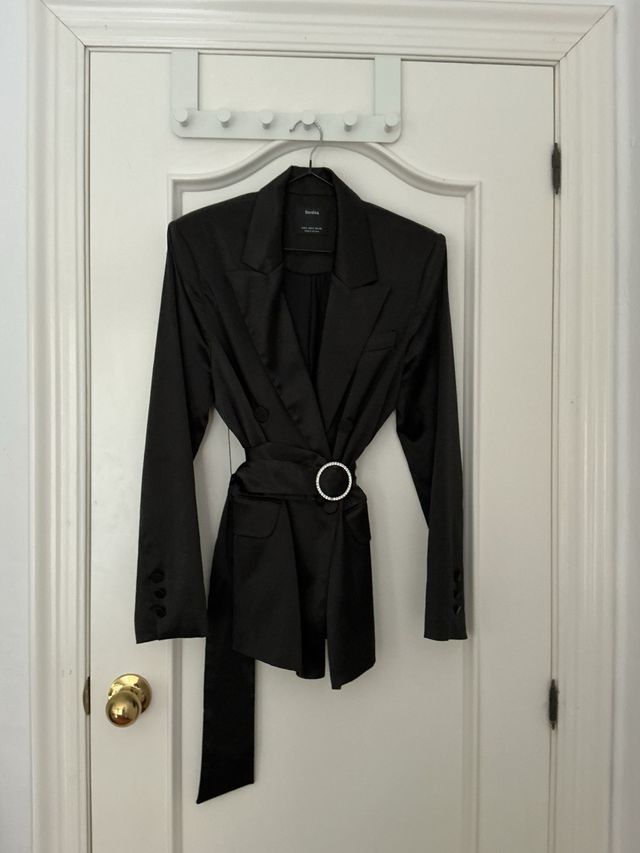 Blazer Bershka satinado con cinturón