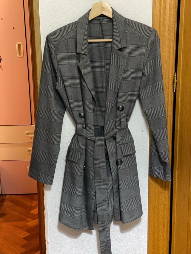Blazer de cuadros gris con cinturón