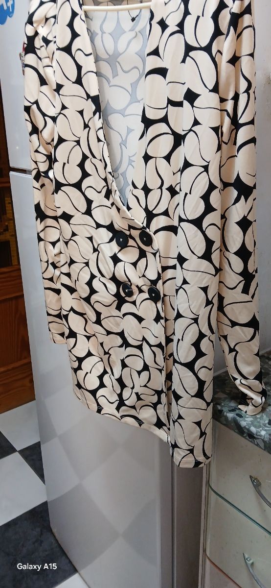 Blazer estampado beige y negro
