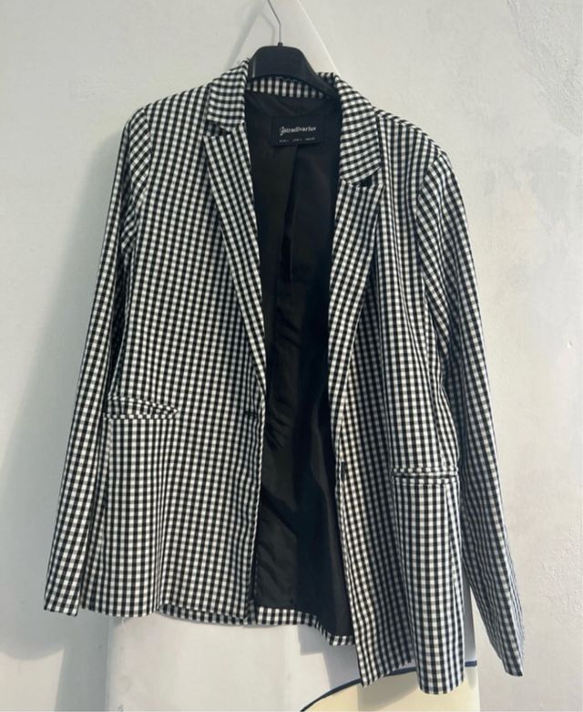 Blazer Stradivarius cuadros blanco y negro