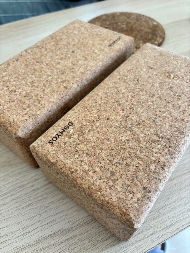 Dos bloques de corcho para yoga. Son ligeros y ofrecen buen agarre. - Material: Corcho. - Color: Natural.