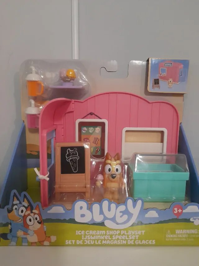 Set de juego de la heladería de Bluey, perfecto para recrear divertidas escenas. - Incluye figura de Bluey. - Accesorios para la heladería. - Diseño colorido y atractivo.