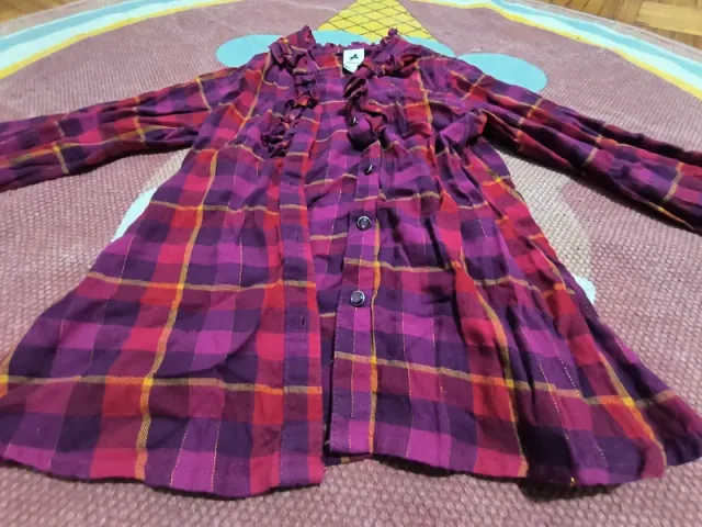 Bonita blusa de cuadros para niña. - Diseño con volantes en el cuello. - Mangas largas. - Cierre de botones. - Tejido con hilo brillante.
