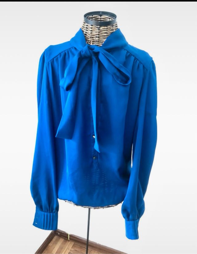 Blusa azul con lazada al cuello Talla XS