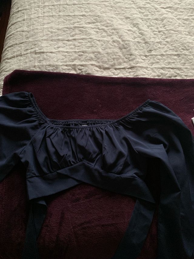 Blusa azul marino manga abullonada