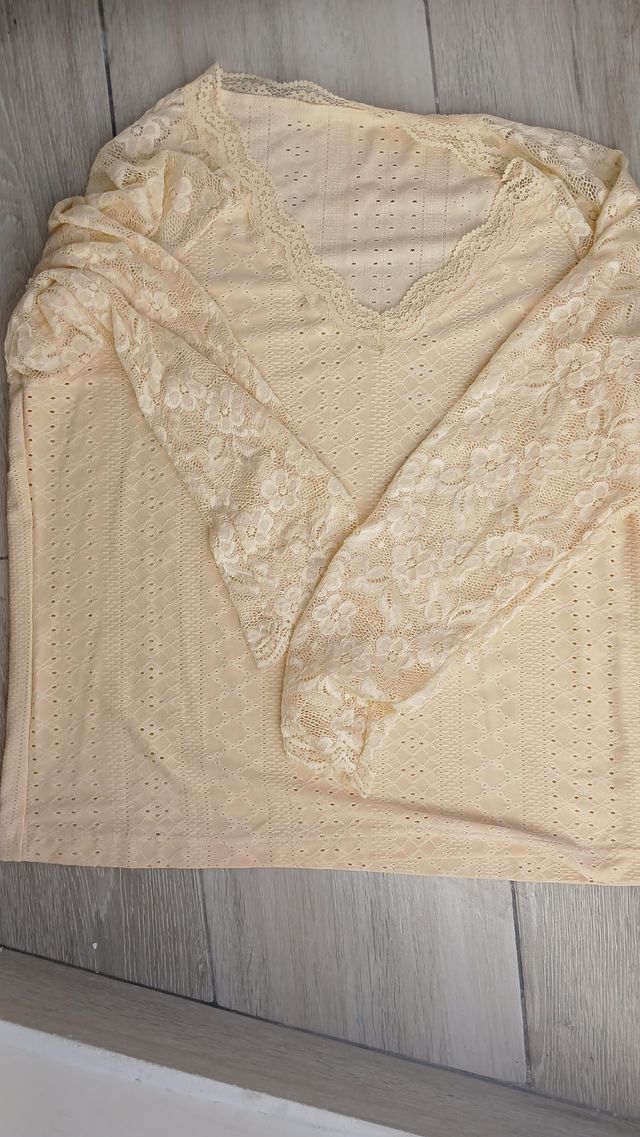 Blusa Beige Encaje Talla M - gratis