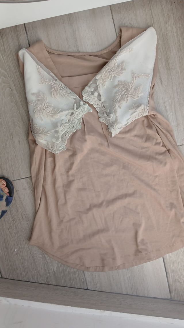 Blusa beige y blanca talla M - gratis