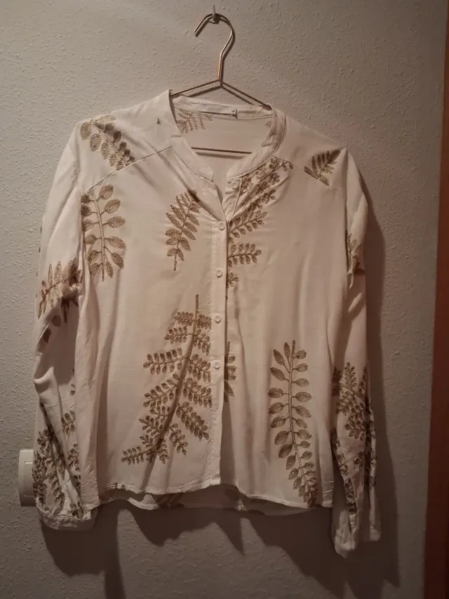 Blusa blanca con bordados dorados