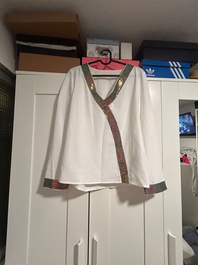 Blusa blanca con detalles brillantes