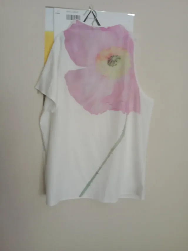 Blusa blanca con flor rosa y otra verde azulado