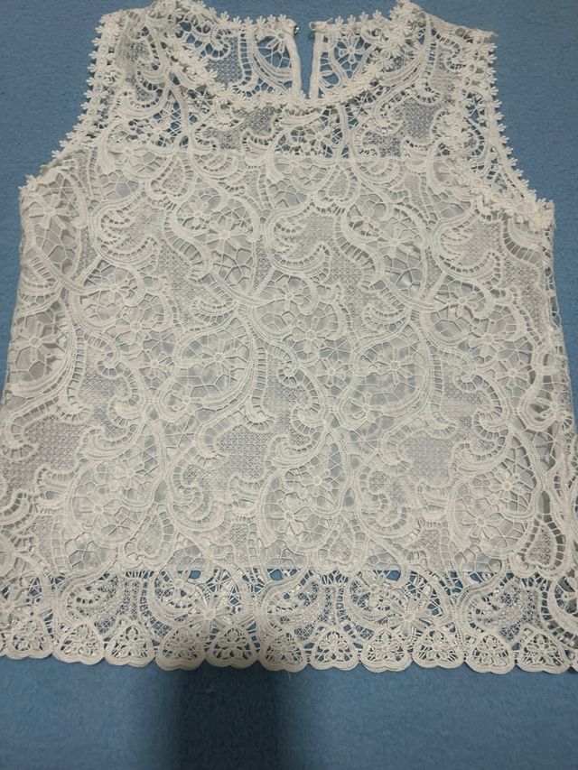 una blusa de encaje delicada, de color puro blanco (foto no muestra real color ) , muy elegante y romántica
