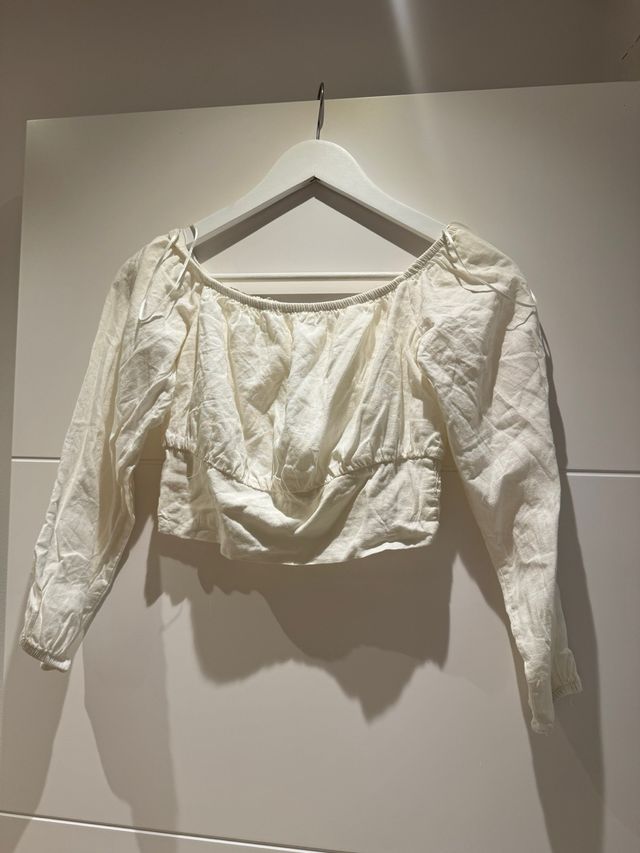Blusa blanca manga larga crop top