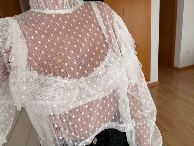 Blusa blanca transparente con lunares