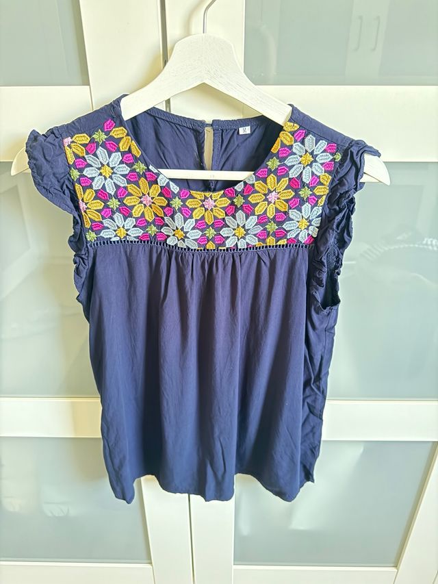 Top bordado floral azul Talla M