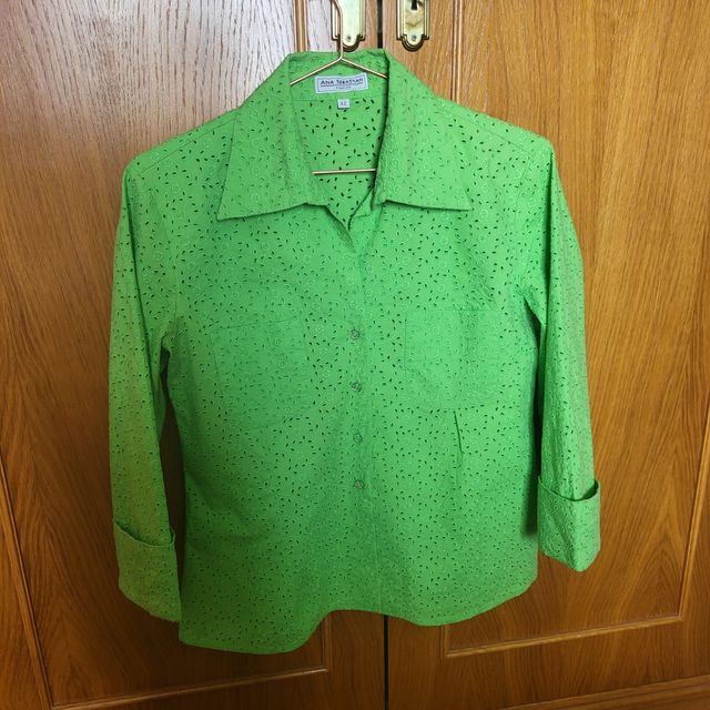 Blusa bordada verde de Ana Sebastián verde,T.42.