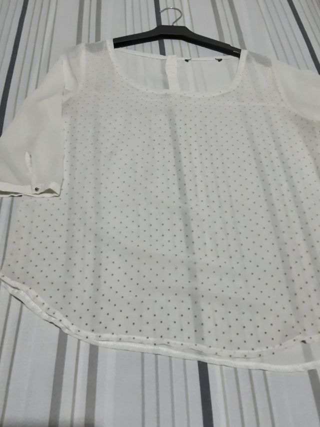 Blusa beige M nueva Zara manga 3/4 puntos oro, tul