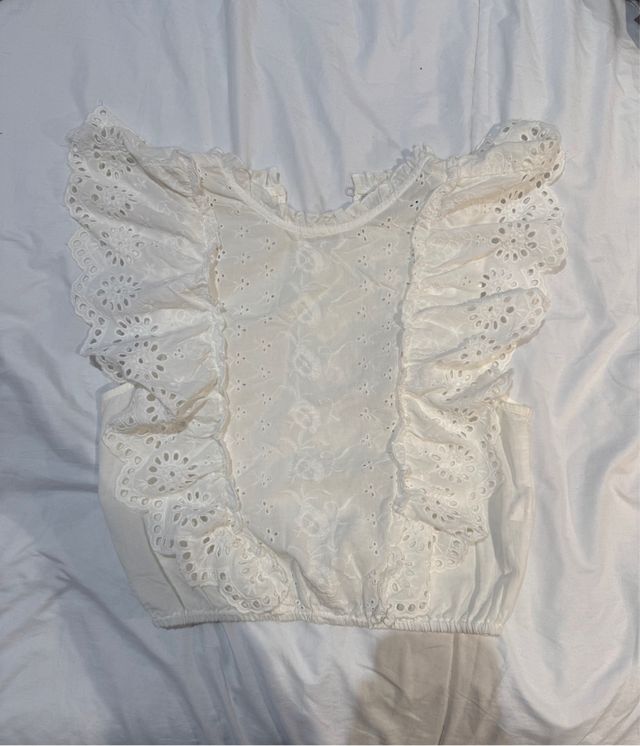 Blusa corta blanca con volantes