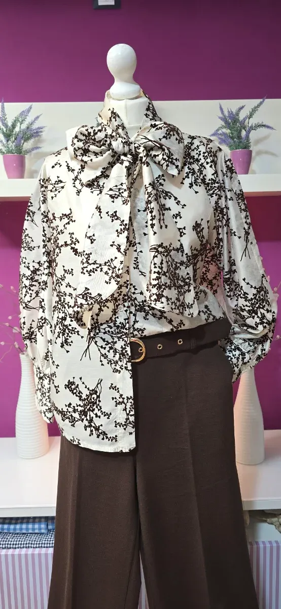 Blusa crema lazo estampado marrón talla única