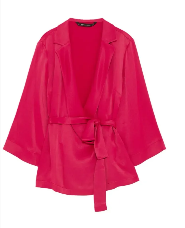 Blusa cruzada Zara lazo cuello solapa fucsia