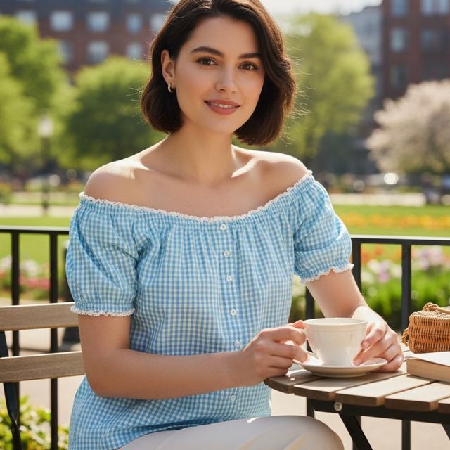 Blusa de cuadros azul y blanco