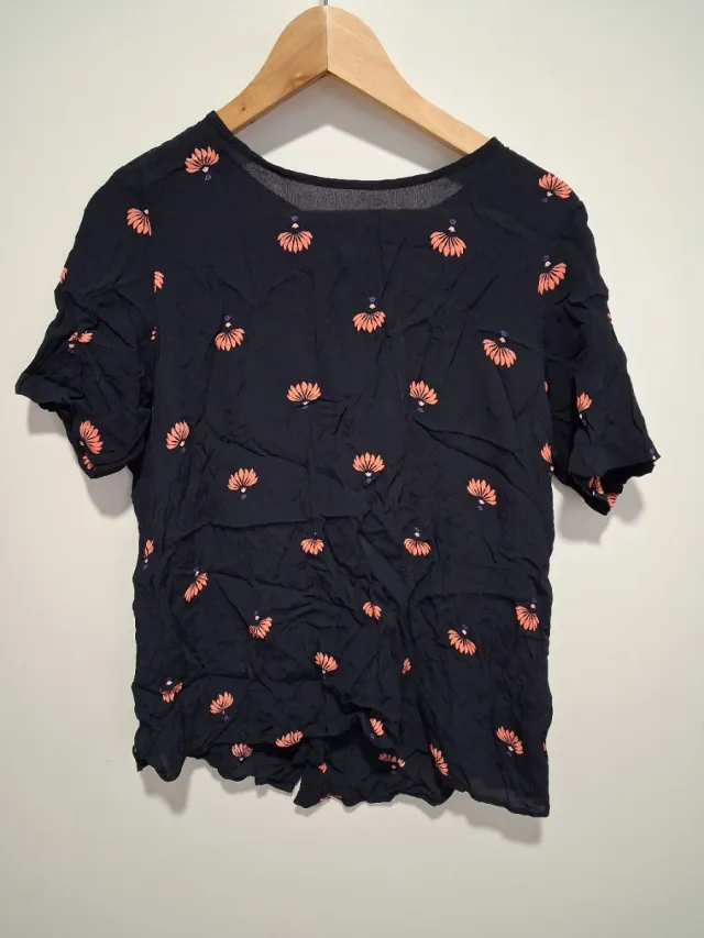 Blusa estampada floral negra y naranja